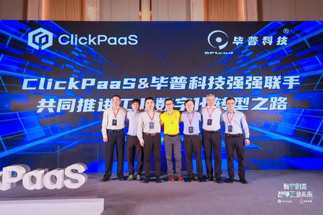 在万众瞩目下,爱游戏tv游戏中心创始人、CEO胡柏,联合创始人、CTO王復兴,CSO汤滨,以及毕普科技的创始人曾令卫,毕普科技联合创始人许有利、营销副总张晓峰上台共同开启了CP&BP的工业数字化未来。